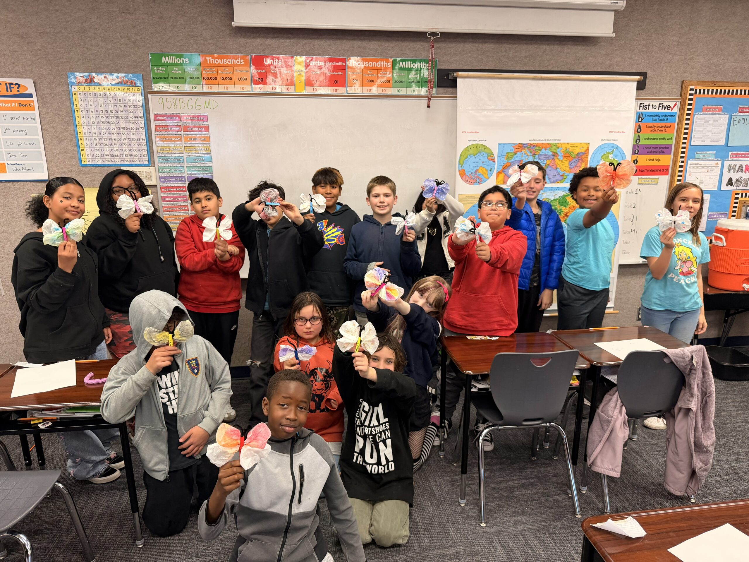 Also on Friday, through United Way of Salt Lake’s support, volunteers from local CHG celebrated Read Across America Day at East Midvale reading Senorita Mariposa, a bilingual book about the migration of a Monarch butterfly, and creating watercolor butterflies with every class. Students did a fabulous job and our garden windows are beautifully adorned. Thank you CHG and UWSL!