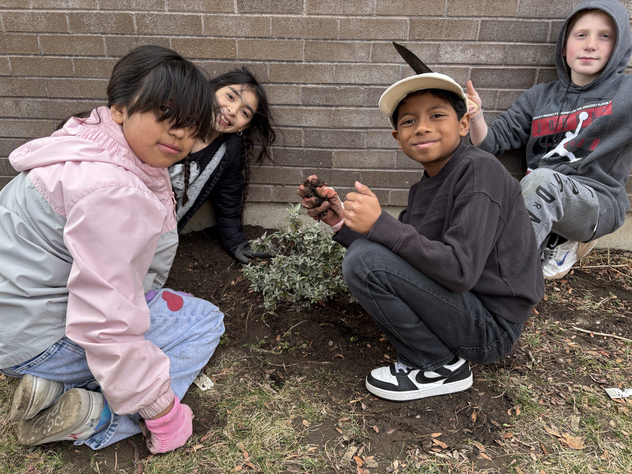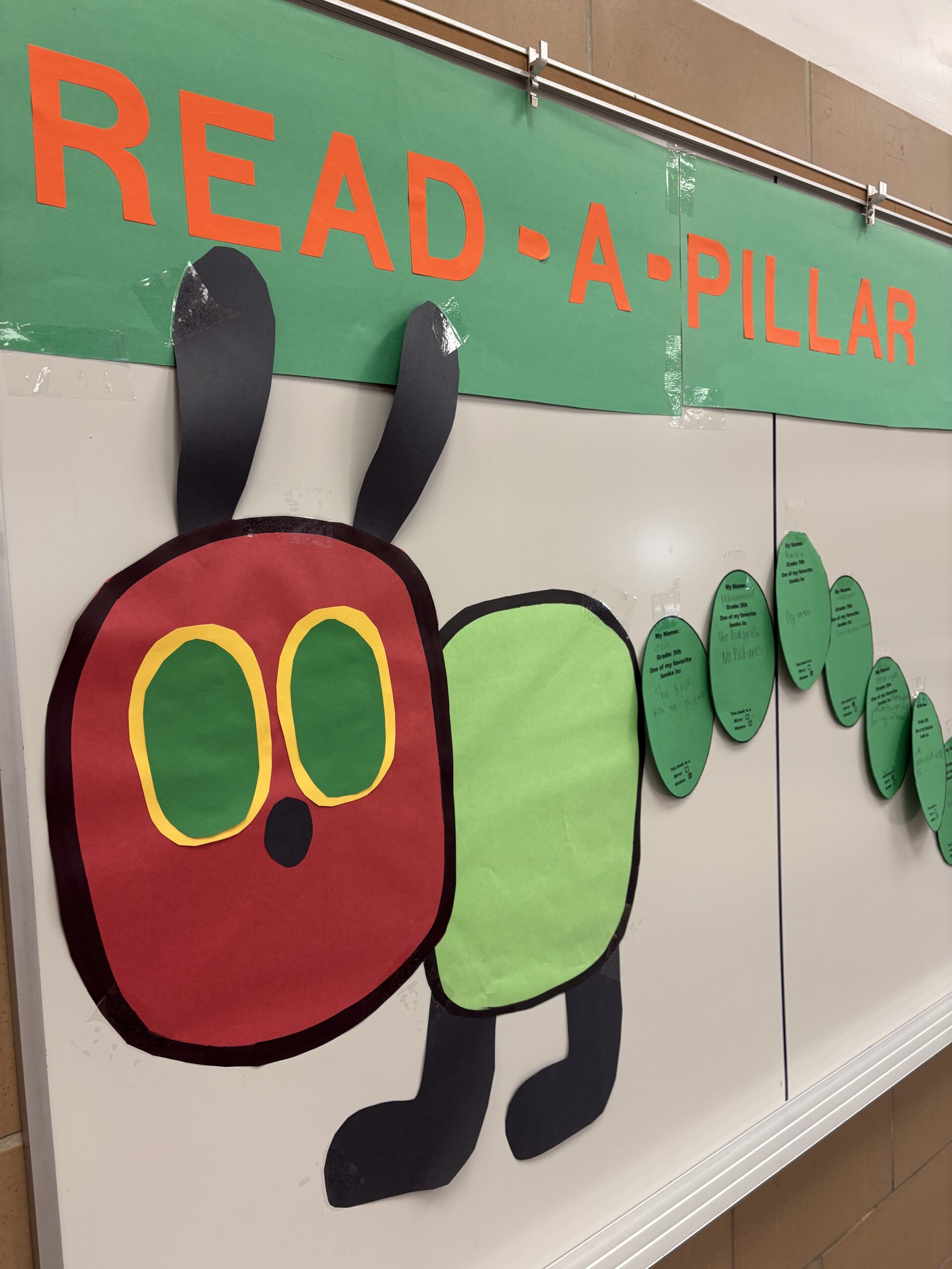 From caterpillar to butterfly – a life cycle! That was the theme of East Midvale’s Read Across America Week. Monday March 2 is Dr. Suess’ birthday and you would have seen the Cat in the Hat serving eggs and ham in the cafeteria! You also would have seen the beginnings of our Read -a-Pillar creeping along the walls, growing with each segment added with a student recommendation of their favorite book. On Tuesday, students could do a Big Book Story Walk to read about the life cycle from caterpillar to butterfly. The pictures were a precursor to the live caterpillars that we will actually watch change from chrysalis into Butterflies in the Pavilion. On Wednesday, fourth grade classes planted Pugster Butterfly bushes in our community garden with the hopes that butterflies will find food for their journeys.