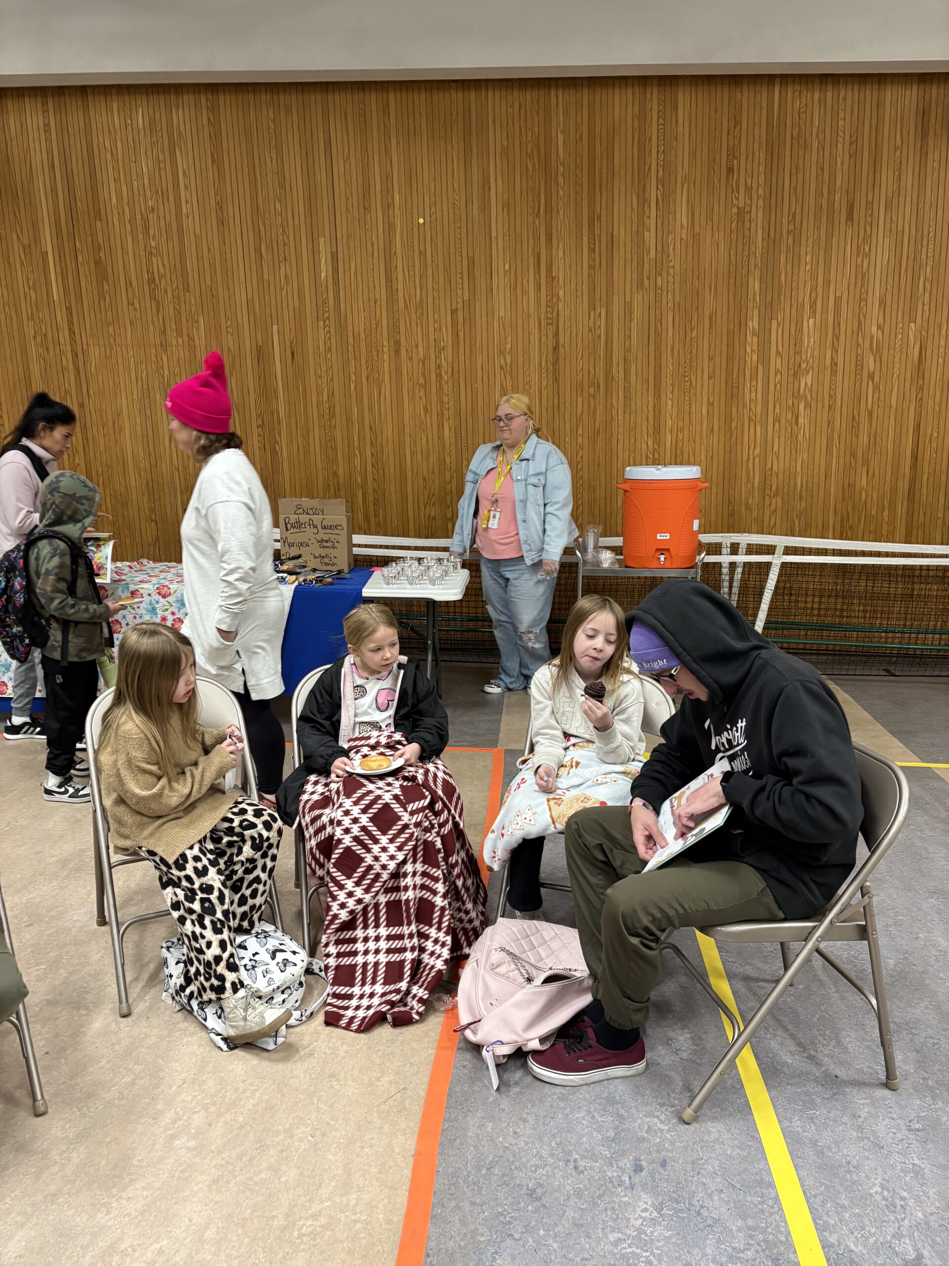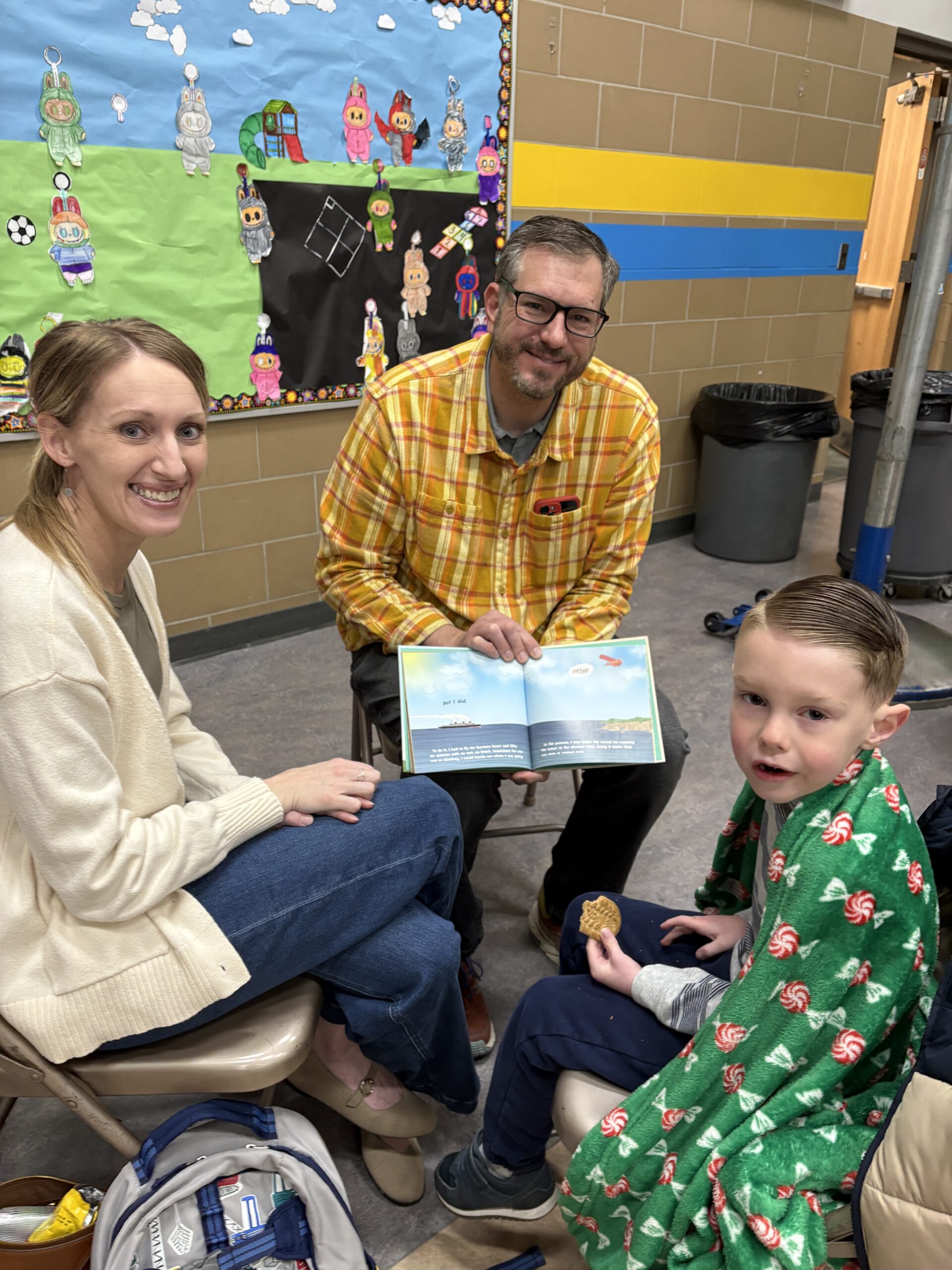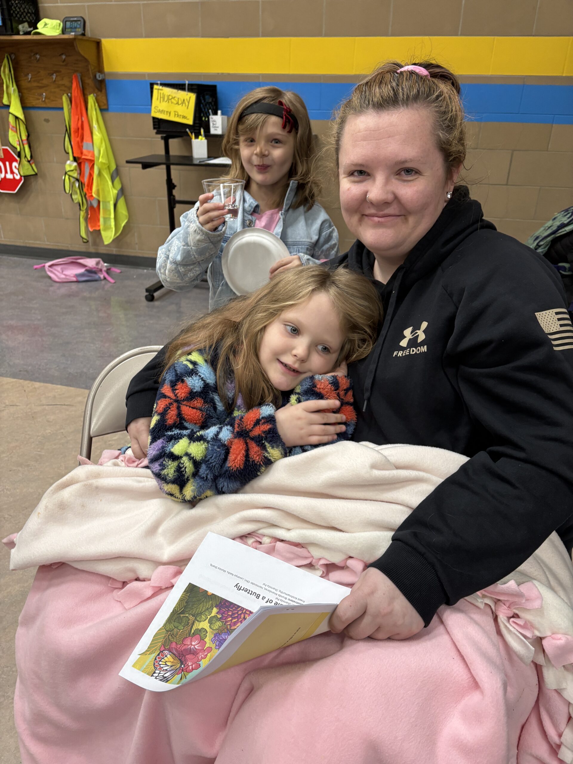 On a snowy Friday morning, families gathered blankets and books and came early to school to begin the day reading together! “I spied” Bethany Barton’s book I Am Trying To Love Spiders, A Very Hungry Caterpillar and The Tale of a Butterfly!