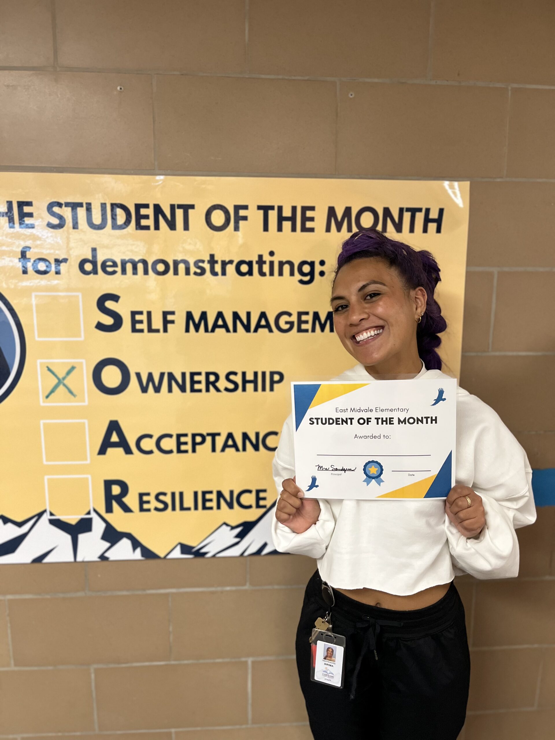 Immediately following the parade was our Student of the Month assembly for Ownership! Congratulations students, Ms. Williams (teacher of the month) and Ms. Meera (ESP of the month) and Kierra Tucker (Volunteer of the month).