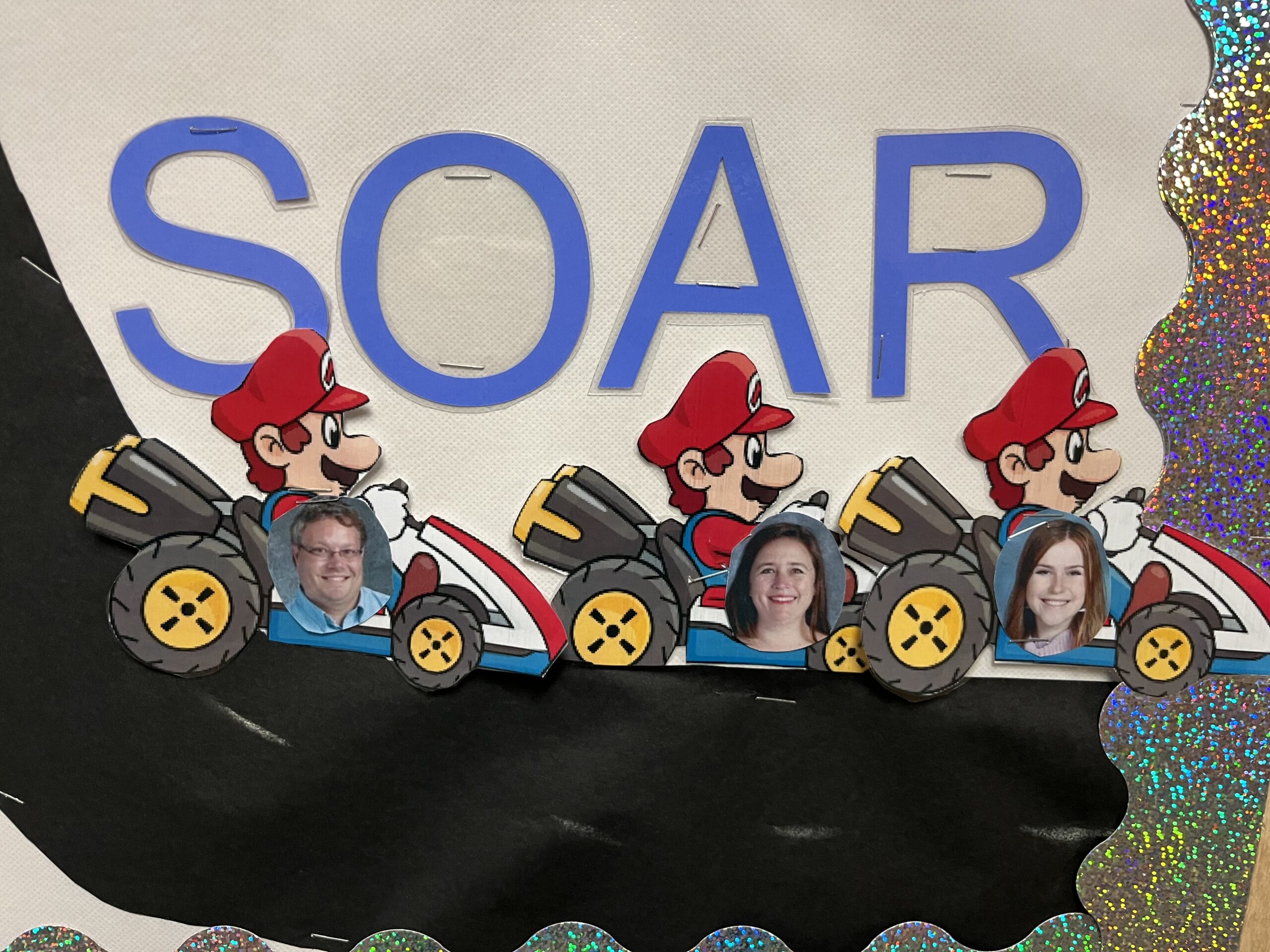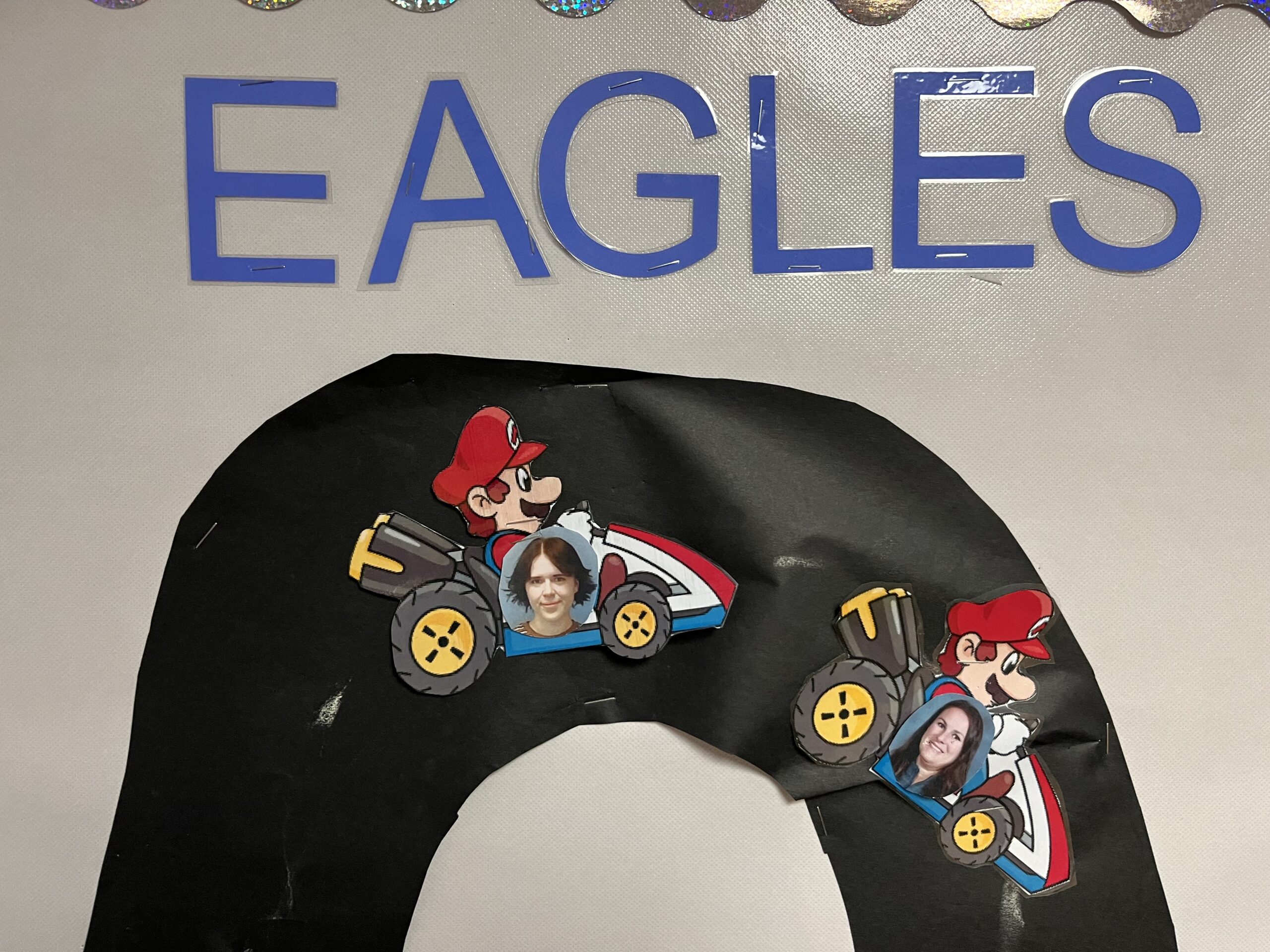 There were attendance shout-outs for classes having 95% of students – Ms. Gillis, Mr. Carter and Ms. Williams’ classes have all finished the first Mario Cart lap but there are several classes close behind.